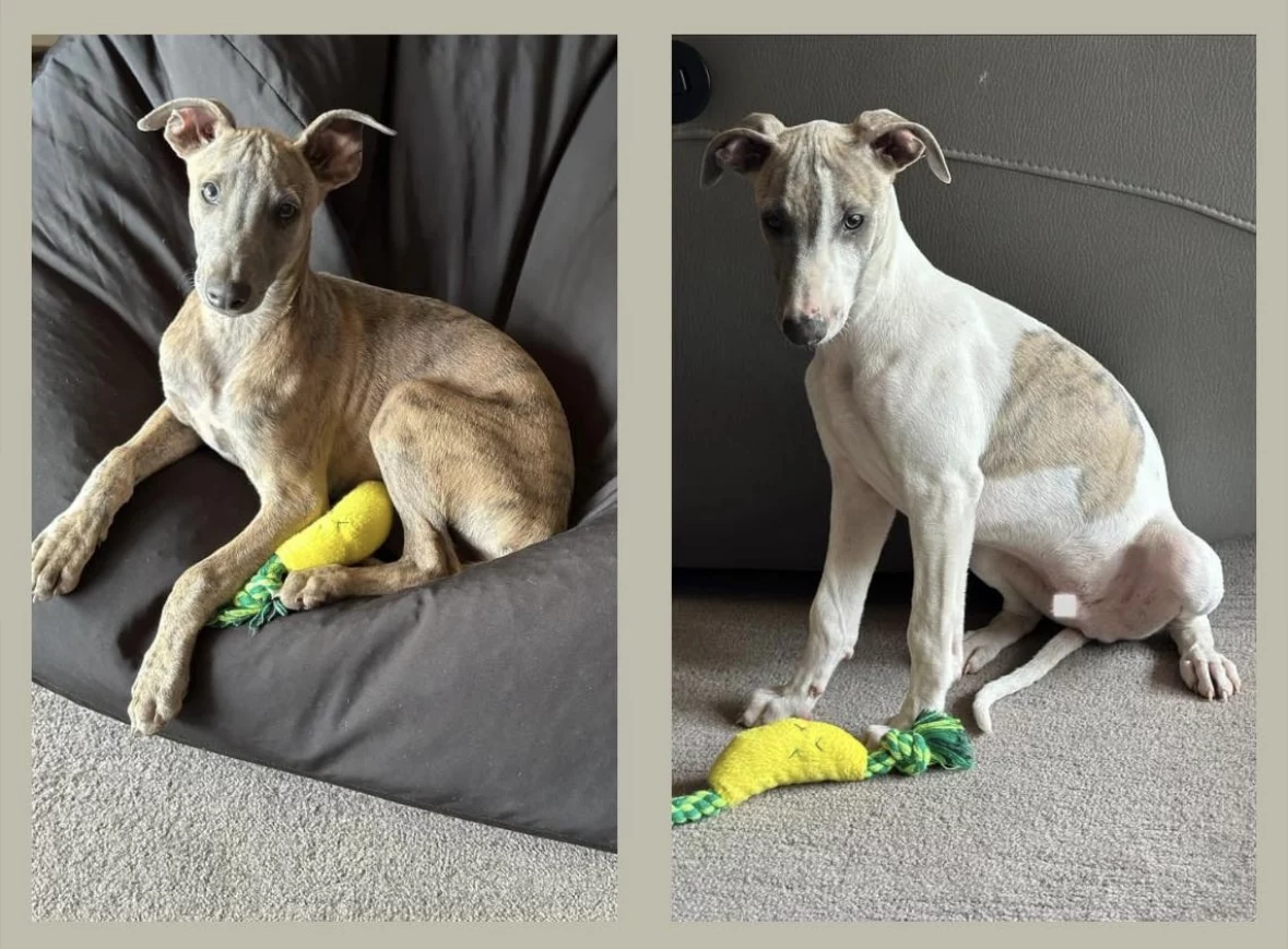 Ready now to find their forever homes. Two male Whippet pups, 18 weeks old (4.5 months), have had their 1st, 2nd, and 3rd vaccinations, are microchipped, and up to date with worming.
