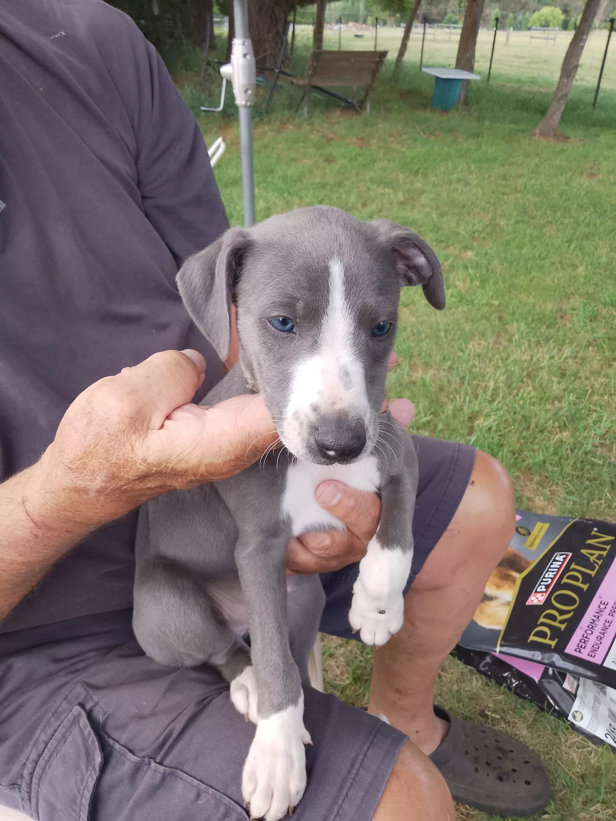 Very friendly, energetic for about an hour a day, otherwise typical whippet puppy sleep a lot.