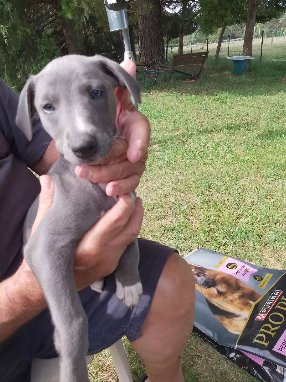 After weaning, puppy biscuits with warm water, chicken mince and puppy milk.