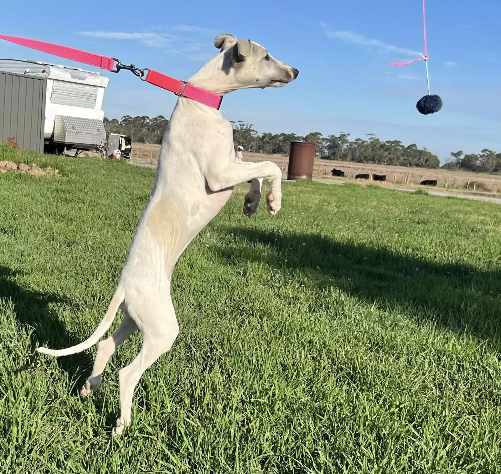 - Custom made Whippet martingale collar, lasting the pups lifetime