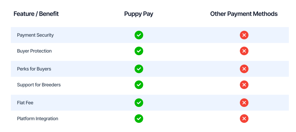 All payments through Puppy Pay are encrypted, trackable, and covered by our Buyer Protection Promise.